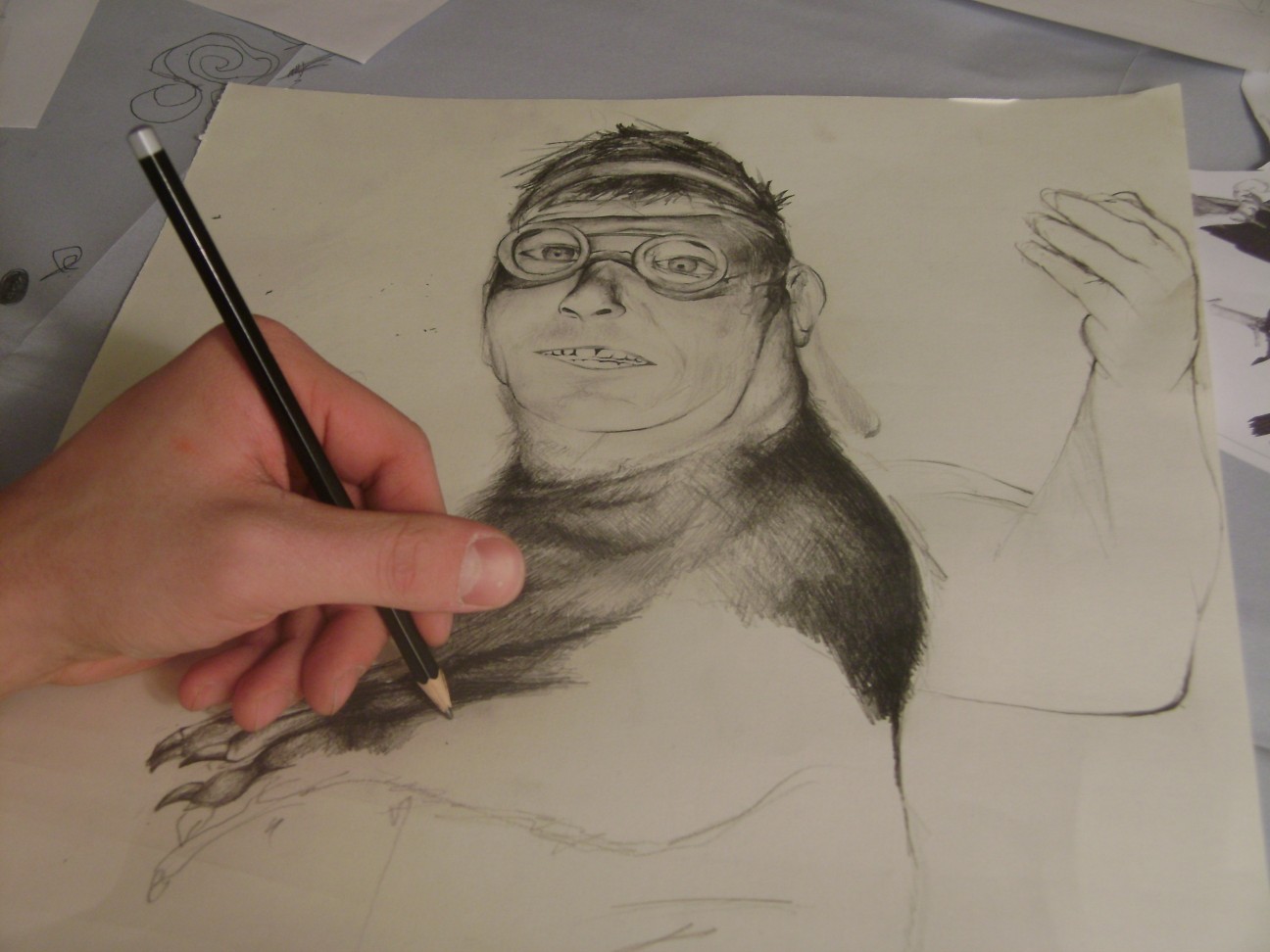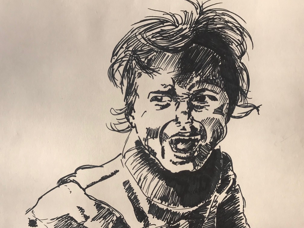 Portraitzeichnung auf Grau